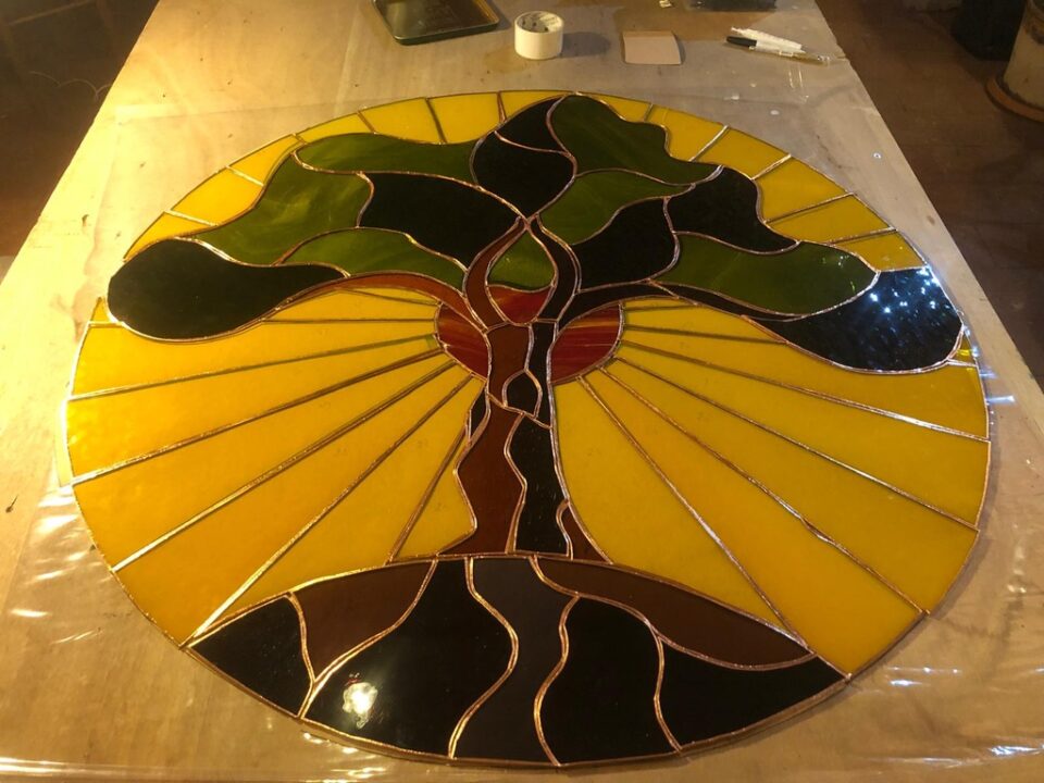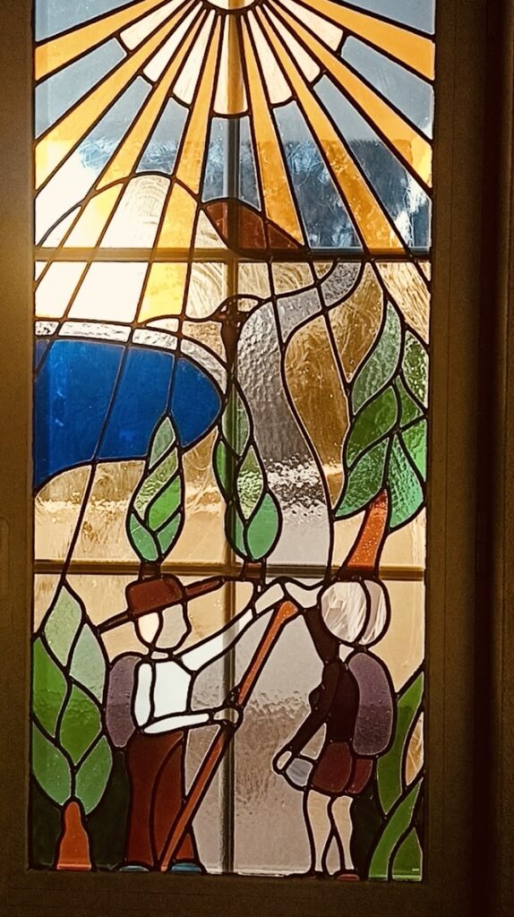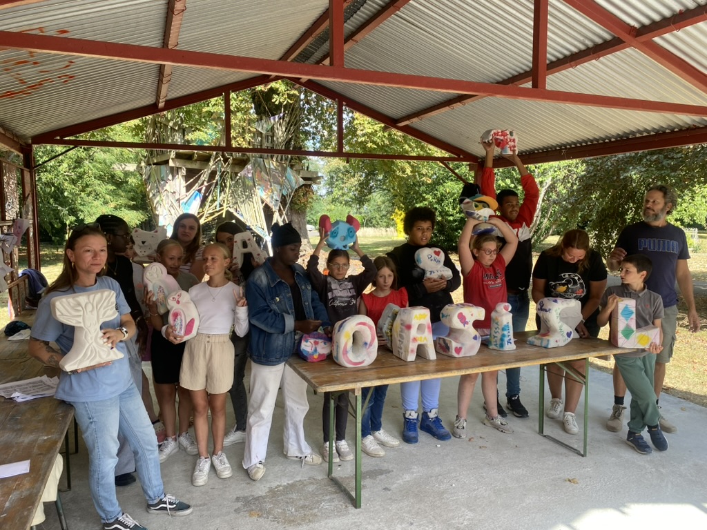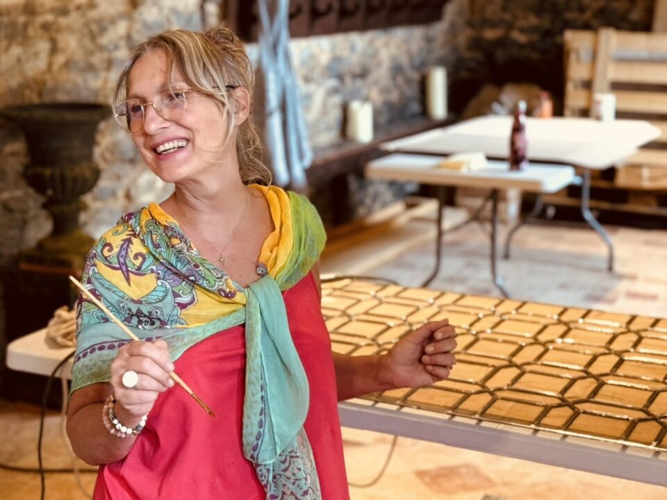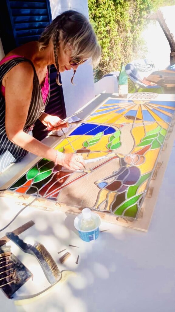 Puis se sont enchainés volontairement vitraux et concerts jusqu’à aujourd’hui… L’année 2025 elle, commença par 3 mois de résidence à https://www.lasourcegarouste.fr/ clairement mon asso préférée du monde entier! Elle accueille des artistes qui sont mis en lien avec des enfants issus d’environnement complexes et souvent perdus dans des déserts culturels. Benoît a fait de la mosaïque de verre et de la sculpture carton avec eux. Avec moi c’était ateliers respiration/clown de théâtre et rêves éveillés. Oui ces petiots ont tous infiniment besoin de réapprendre à se servir de leur créativité dans ce monde où tout est à moitié pré-mâché par les écrans, sans pour autant être bien digeste…